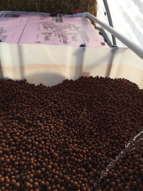 Started some Arugala in the ebb-n-flow bed and there at the far end the first hole cut in the floating raft system for a plant.