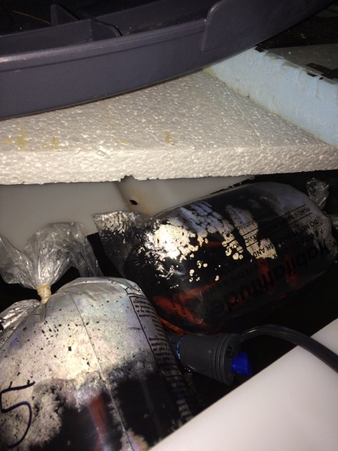 Hydrontin grow bed with bell siphon installed. We added a rock to keep it from floating up.