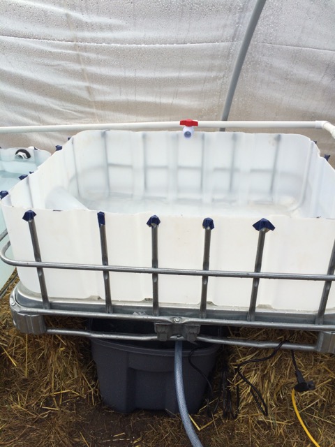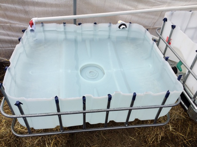 Find some IBC Totes, food grade to create inexpensive fish tank and grow beds. We found two for $100 each.