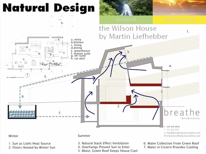 Of course we called Martin Liefhebber as the obvious choice to help us design our future home. To start with the design requirements that we established were strict, zero fossil fuels which in our climate seemed more than a bit extreme. However, we achieved this and much more in the design of our home and you can too. This is where it gets interesting as it is as much about what we DIDN'T do as what we DID do. The passive solar design combined with green roof, and "sahara" architecture for air-conditioning allowed us to do without any fossil fuel burning furnace for the winter and without any air conditioner in the summer. This saves us a lot of money, just imagine no gas/oil bill in the winter and a much lower electricity bill in the summer (no air-conditioner humming away your hard earned money). Yes, this is what we started with when we completed construction in 2001. A well insulated, passive solar home that is comfortable all year round and extremely cost effective to operate while at the same time costing about the same as a conventionally built custom home. Everything we applied to the design can be incorporated into your future renovations or if you are lucky enough, your own custom built home.