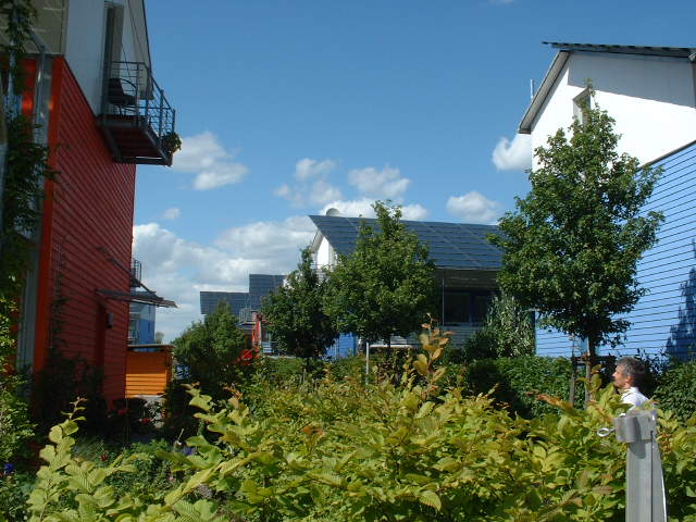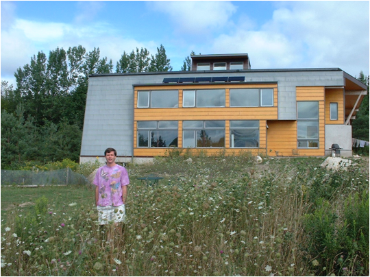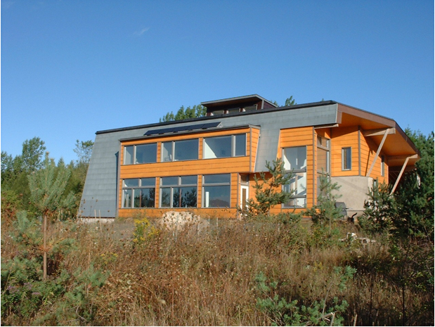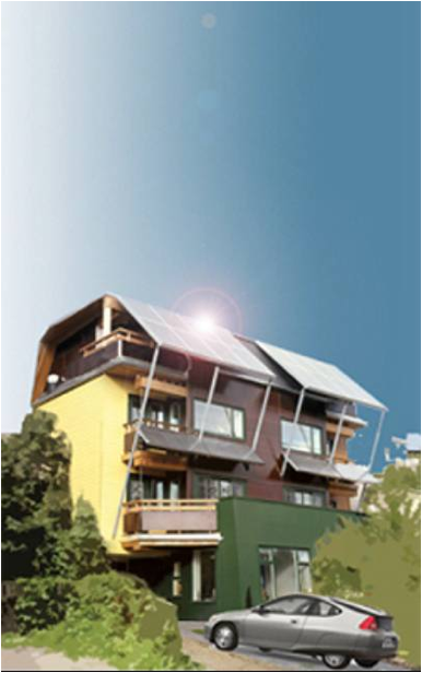Reading about sustainable communities and homes is one thing. Actually seeing one is quite another. One of the most powerful experiences in our journey toward building a solar powered home was visiting the Toronto Healthy House . We visited the "Healthy" house in, ironically, Riverdale, Toronto, the neighborhood we had left as a downsizing measure. We were thoroughly impressed by what we saw, and left with a collection of brochures and a thirst for more. Reflecting on what we'd learned, Leigh and I found that we had many more unanswered questions, so we booked a second visit to see it again and take notes, pictures, and video-tape the tour. The Toronto Healthy House demonstrated all of the ideas I had read about for years, including passive solar design, solar photo voltaic panels, solar water heating, high insulation values for walls, windows and roof, and predominantly natural building materials. What's more, this duplex demonstrated both an independent solar-powered "off-the-grid" setup on one side, and "grid-connected" solar-power electrical system in the other unit. It could be done!