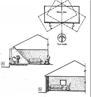 in a passive solar house may vary by as much as 30 degrees east or west of