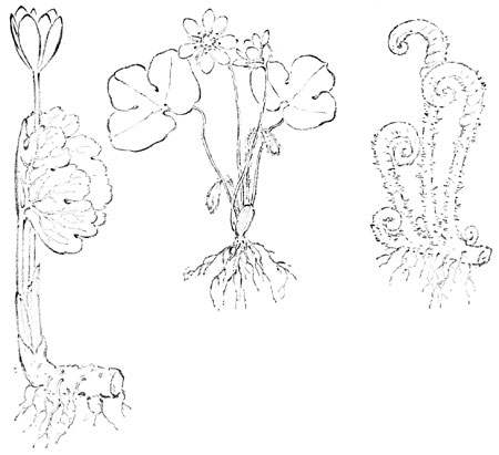 Bittersweet, Iris, and Geranium in Color; Use of the Finder in Sketching most Interesting Part of a Growth for a Sketch; Flowers and Leaves in Different Positions; Growth of Stems, Joints, Buds, Leaves, and Sprays; Root Growths; Use of the Accented Outline; Composition from Plant Forms. | |