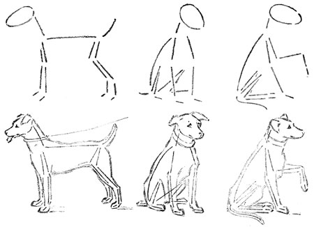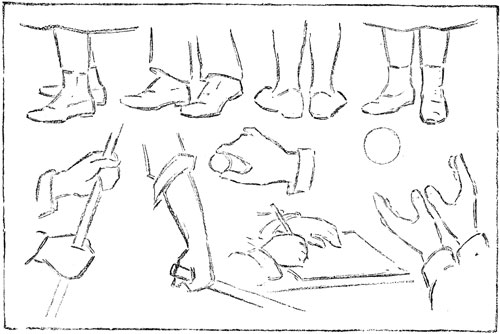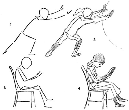 Brush Studies in Color from Pose; The Same Pose in Different Positions; Different Steps in Pose Drawing; Proportion and Action Shown in Leading Lines or "Skeleton" Figures; Hands and Feet; Dog and Pigeon in Leading Lines, in Outline and in Values; Study of a Masterpiece; Home Exercises. | |