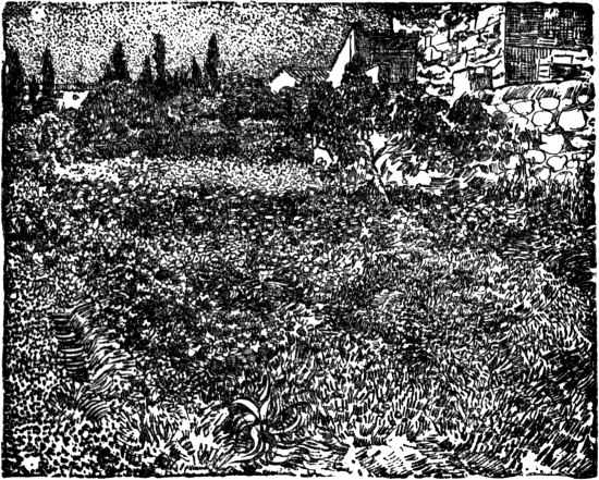 And Van Gogh himself was perfectly aware of this. For he realized that the claims which nowadays are put upon the energy of one individual concentrated seeker, are so enormous that even the complication of marriage may prove one strain too many for him. He admits that the Dutch artists married and begat children; but, he adds: “The Dutchmen led a’ peaceful, quiet, and well-ordered life” (page 61). “The trouble is, my’ dear old Bernard,” he says, “that Giotto and Cimabue, like Holbein and Van Eyck, lived in an atmosphere of obelisks—if I may use such an expression—in which everything was arranged with architectural method, in which every individual was a stone or a brick in the general edifice, and all things were interdependent and constituted a monumental social structure.... But we, you know, live in the midst of complete laisser allerand anarchy; we artists who love order and symmetry isolate ourselves and work at introducing a little style into some particular portion of the world” (page 59).