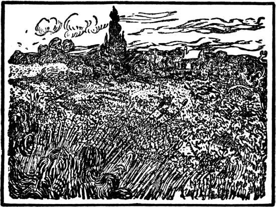 Without esteeming him nearly so highly as many of his most enthusiastic admirers do, and without sharing in the least in that hysterical exaggeration of the value and beauty of his works which has characterized the attitude of large numbers of his followers on the Continent—an exaggeration which, as I shall show, he would have been the first to deprecate and to condemn—I must still confess that, as an impressionist, i.e., as a revolutionary of the ’eighties who, to my mind, strove to surpass impressionism, as also so-called post-impressionism, he is a painter for whom I feel a much greater respect than I can feel for Manet, Monet, Renoir, Degas, and Whistler. Let me make it quite plain that I realize the superiority in some respects of the latter’s art-forms; let me emphasize the fact that in my opinion Van Gogh was by no means so mature in his procedure as any one of these artists (save, perhaps, in so far as his drawing far excelled Renoir’s); but that his aims were higher and more vital, that he realized more keenly what was wrong and what was desirable, that he was a thousand times more profound than his predecessors—of all these things, after careful consideration, and I must admit grave doubts, I have at last grown quite convinced.